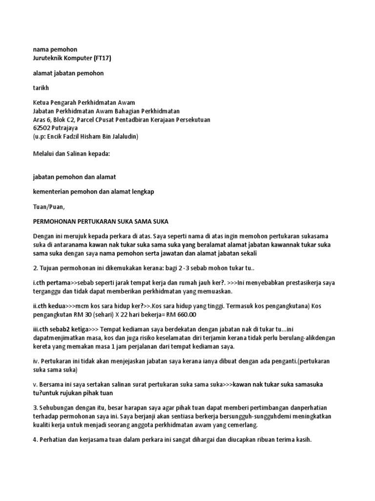 Contoh Surat Permohonan Pertukaran Pdf